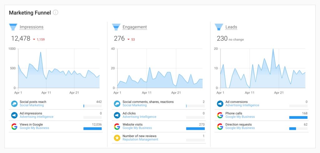 The dashboard costs $199/mo (plus a small setup fee) and here’s the really cool part: as clients’ business grows and they want to delve deeper into their digital marketing strategy, we offer a variety of optional add-on services such as: